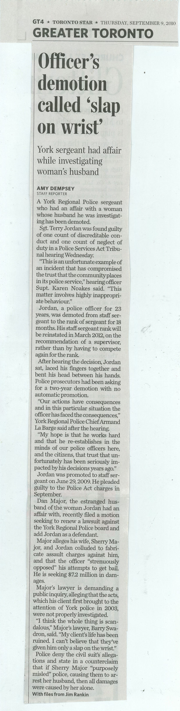 YORK REGION News 2010-09-09 COP'S PUNISHMENT "SLAP ON WRIST"