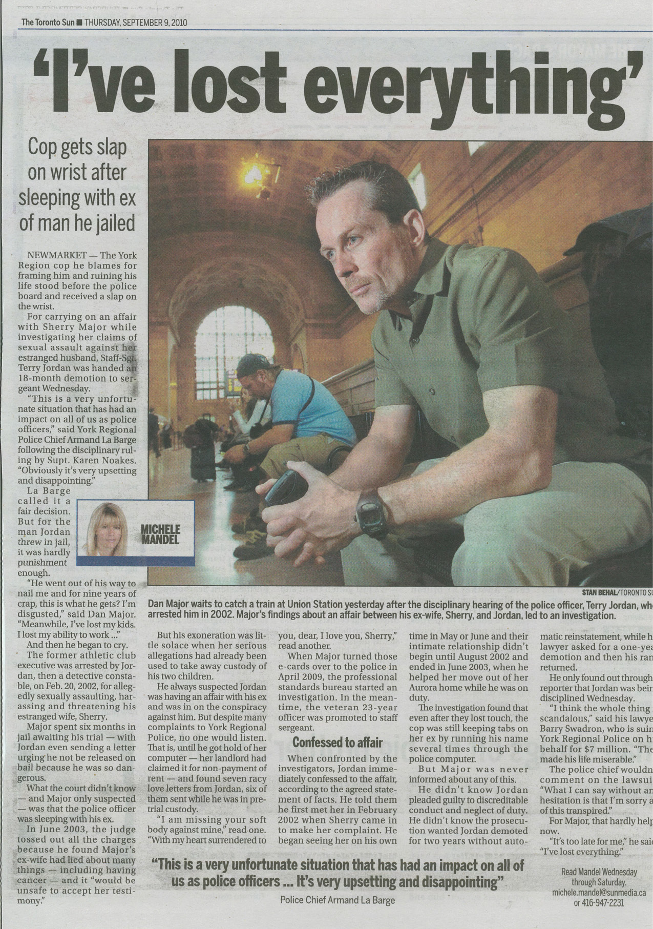 DAN MAJOR LOSES EVERYTHING (Toronto Sun Article SEPTEMBER 9, 2010)